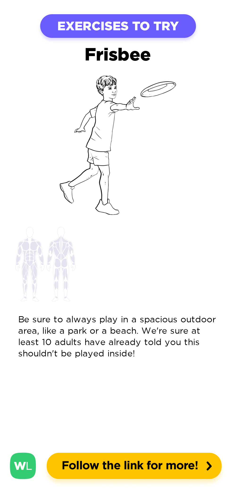Sports - frisbee is a gym work out exercise that targets . Refer to the illustration diagram and instructions above for how to perform this exercise correctly. are related exercise that target the same muscle groups as sports - frisbee. Visit our free illustrated exercise directory for more exercises to try in your workouts.