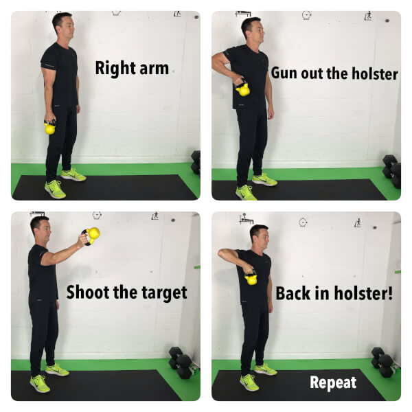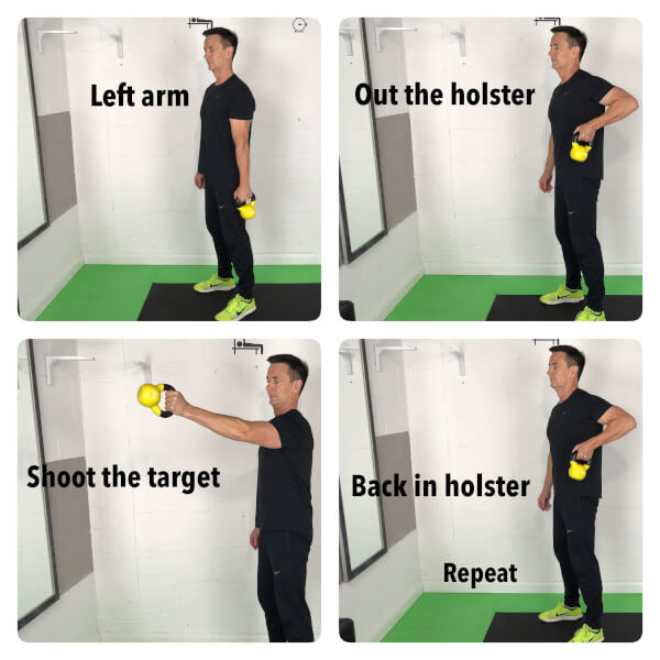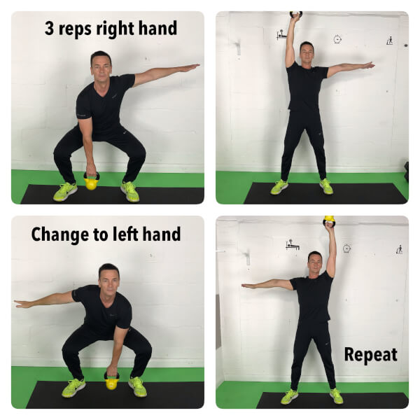 - Hold the kettlebell ‘bottom up’ and hold near the chest. The kettlebell is going to travel around the back of your neck and go completely around your head. Avoid bumping your skull! Once the kettlebell is back in the starting position; then reverse the direction. This loosens the neck and shoulders.